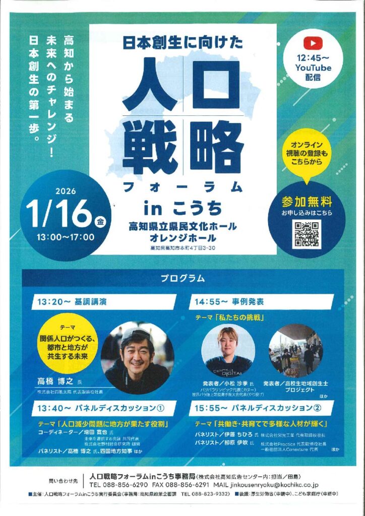 ■主催:人口戦略フォーラムinこうち実行委員会(事務局:高知県政策企画課 TEL 088-823-9332)