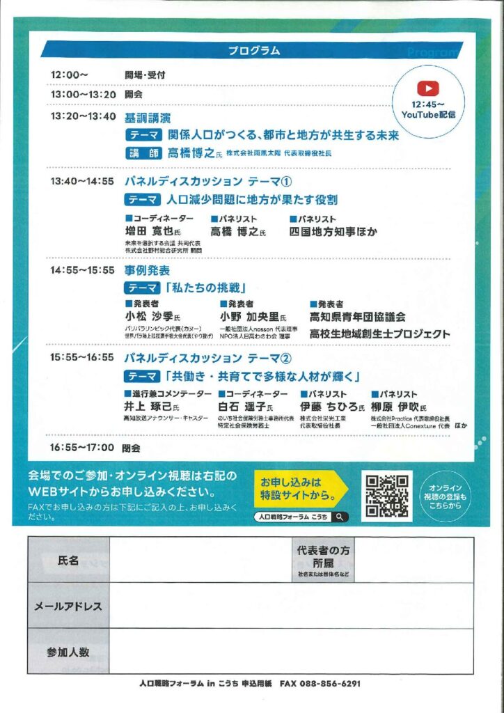 人口戦略フォーラムinこうち事務局 (株式会社広告センター内:担当/田島)