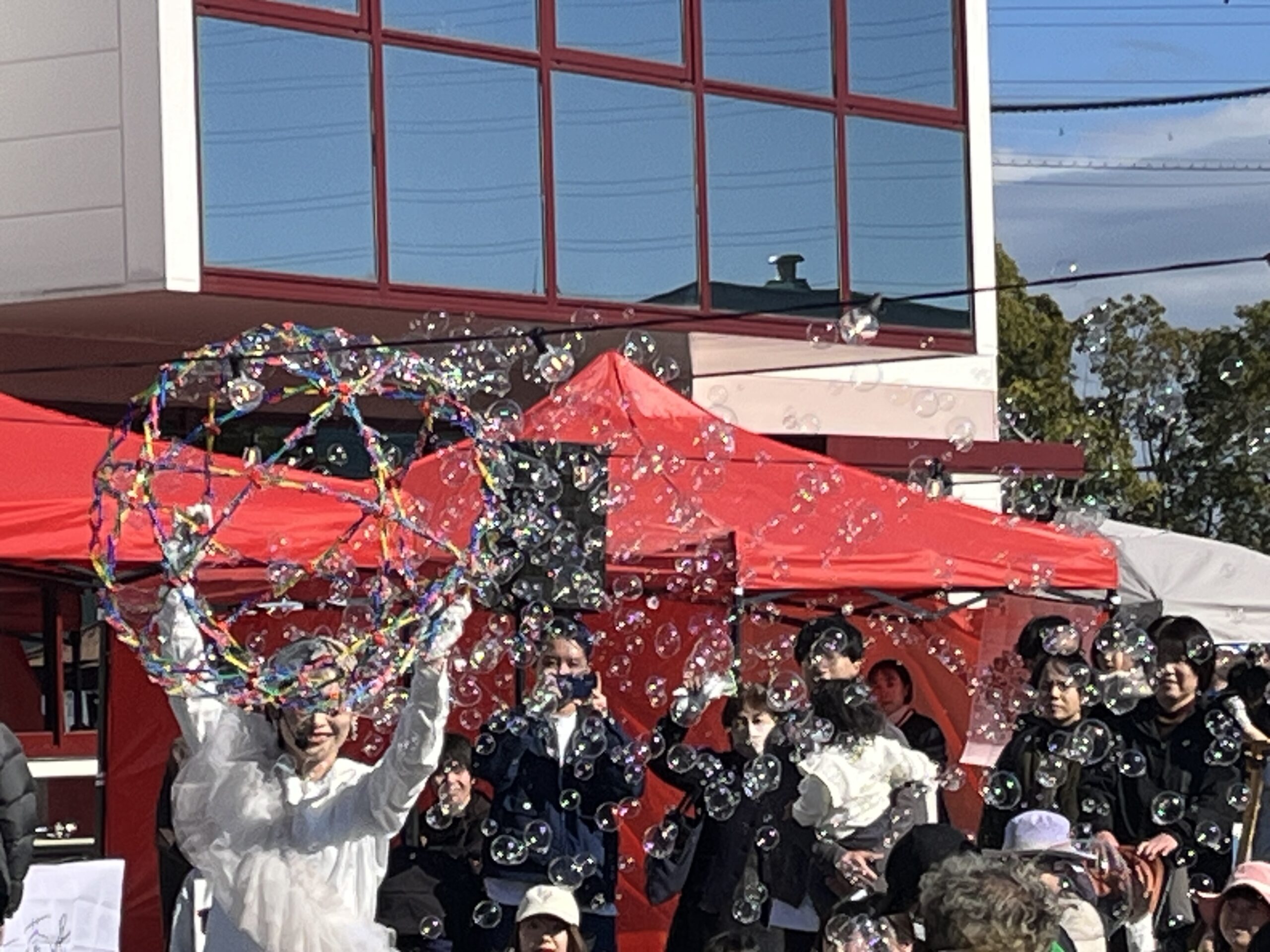 シャボン玉ショーはさくらパークでも開催され、風に流されるシャボン玉を追いかけるこどもたちがかわいかったです。