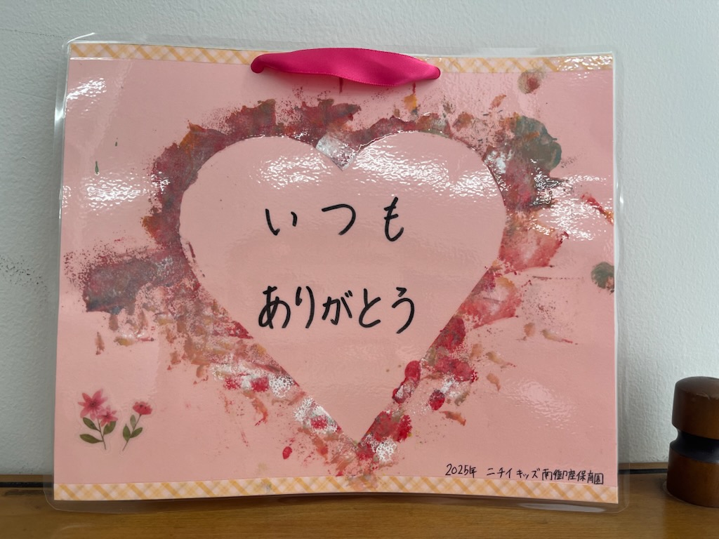2025年11月19日 / 最終更新日 : 2025年11月19日 高知卸商センター協同組合 管理者 活動報告 ニチイキッズのこどもたちから感謝状💞 勤労感謝の日を前に、ニチイキッズのお友だちが感謝状を持ってきてくれました。 かわいいこどもたちからの感謝状、ありがとうございます。 「大きくなったら何になるの?」の質問に「あんぱんまん」や「ばいきんまん」とのお返事に職員一同目じりがさがりっぱなしでした。 こどもたちから感謝状、こちらこそ遊びに来てくれて「ありがとう」💖 組合会館入口に飾りました。 大きくなったら「あんぱんまん」になるそうです。将来が楽しみです🎵